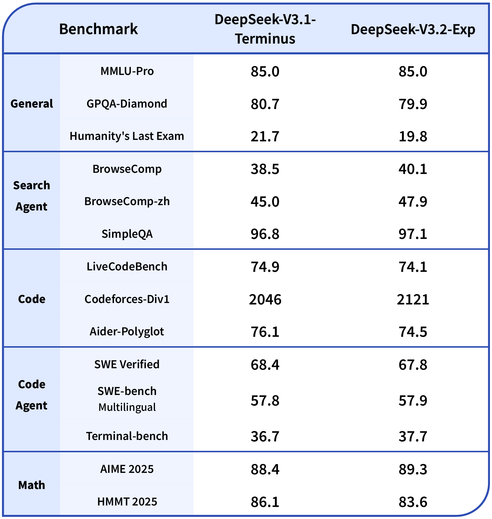 值得一提的是,就在9月22日,DeepSeek才发布了DeepSeek-V3.1-Terminus模型,Terminus在拉丁语里是终点、界限的意思,当时业界猜测这是否会是V3系列的终极版本,并期待下一个发布的将是大版本更新,目前看起来这个猜测并不成立。